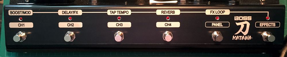 This Pedal-board controls the BOSS© Katana Head through the use of The GA-FC Foot controller